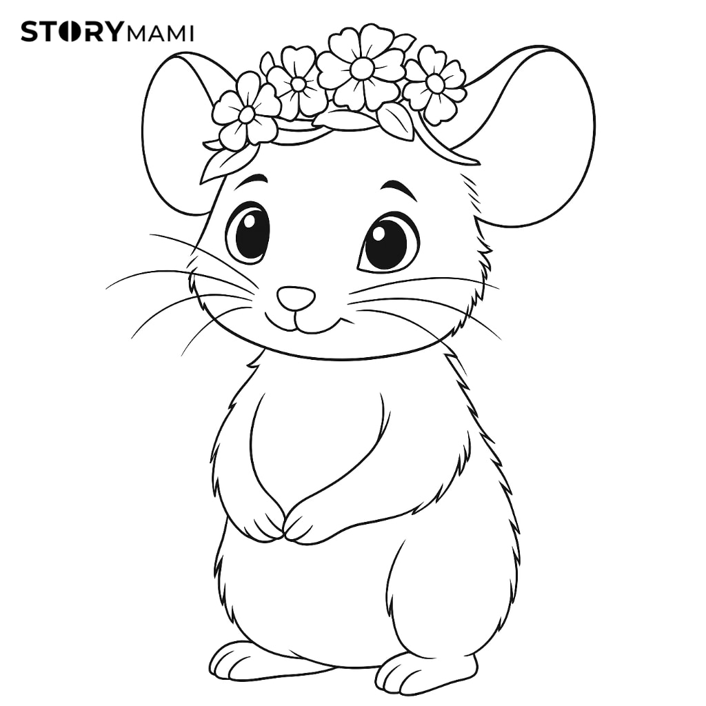 故事中,小老鼠一開始因為沒有帽子參加派對而感到難過,但她的媽媽用後院裡的鮮花,為她親手縫製了一頂獨一無二的花帽子。